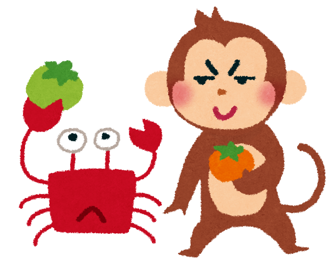 さるかに合戦のイラスト 柿を持った猿と蟹 かわいいフリー素材集 いらすとや
